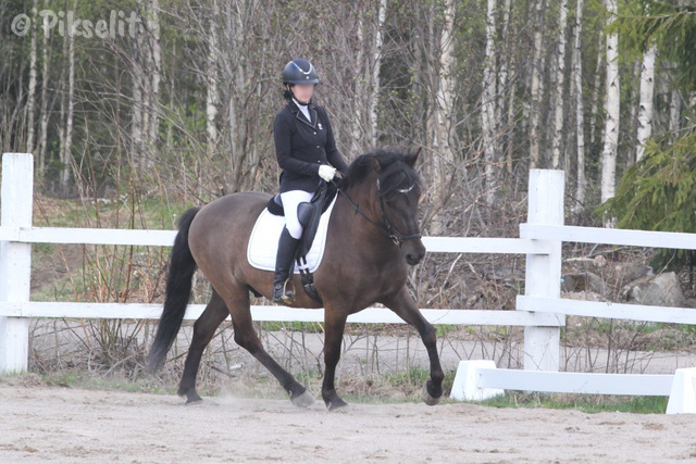 Tänään saatiin kotiin hevonen, jonka kotiutumista olen odottanut rehellisesti sanottuna kaikista eniten tähän mennessä Havukallion historian aikana. Nuoren kouluratsastajan Janella Moilasen oma suomenhevoskasvatti Savutus oli Janellan luottokisaheppa Perhosnäytös-tamman ensimmäinen jälkeläinen ja Moilasen hienosti itse kasvattama ja ylläpitämä 5-vuotias ori. Se oli saanut kasvaa rauhassa pihatossa kahden eläköityneen ruunan kanssa, millä on ehkä osuutta siihen tosiasiaan, että Savutuksesta on kasvanut todella rauhallinen, selväpäinen, luotettava ja tasainen hevosenalku. Orilla on tehty ratsupuolella jo helppo B / A -tasojen puitteisiin töitä, mutta jatkokouluttamiselle on täydelliset puitteet. Janella lupautui kuljettamaan Savun meille, mistä olin kiireisenä tallinpitäjänä supermielissäni. Savulle kuivitettiin uusi uljas karsina ja katsottiin varusteet ja hoitokamppeet valmiiksi. Janella ja Savu saapuivat täsmällisesti sovittuna aikaikkunana ja unelias ori pääsi haistelemaan uuden kodin ilmastoa. Olin kuin pikkutyttö poniratsastuksessa, sen verran tohkeissani katselin tätä mahtavaa hevosta. Oli oikeastaan jopa vähän hassua ja kummallista ajatella, että tuo kasvattajansa pitelemä hevonen oli nyt minun ikioma. Lupasimme kasvattajan kanssa olla yhteyksissä ja mainostin myös omia tulevia varsamyyntejäni siinä sivussa. Kasvattaja tuntui olevan myös tyytyväinen kauppoihin, mikä luo tietysti aina molemminpuolista luottoa hommaan. Savutus sai ulkoilla pikkutarhassa iltapäivän ja ori otettiin iltatalliin aivan kuin se olisi kuulunut kalustoomme jo pitempään. Savu tuntui rennon tyytyväiseltä oloonsa sekä ulkona että karsinassa ja lähestyi tallin väkeä illan aikana ystävällisen uteliaasti ja hyväksyvästi. Tästä tulee mahtava tarina, uskon siihen täysin!